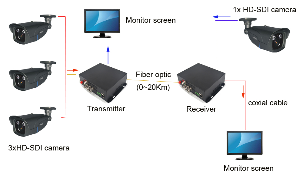 3. Support 4 channles HD- SDI video over a single-mode fiber or multimode .